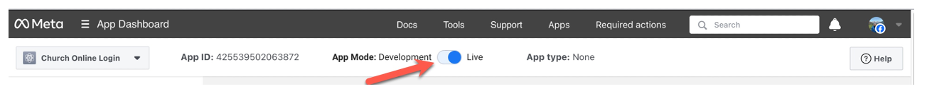 - Once you have the Facebook integration set up in the Church Online Platform, navigate back to the Facebook developer tools page.